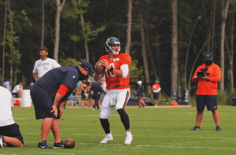 So it seems they decided to lighten things up a bit. At the end of practice, head coach Matt Nagy decided to hold a little competition. Both Hicks and Ifedi would go head-to-head again. Except this time fielding punts. Keep in mind both of these guys are north of 320 lbs. So one can imagine it was a sight to see.