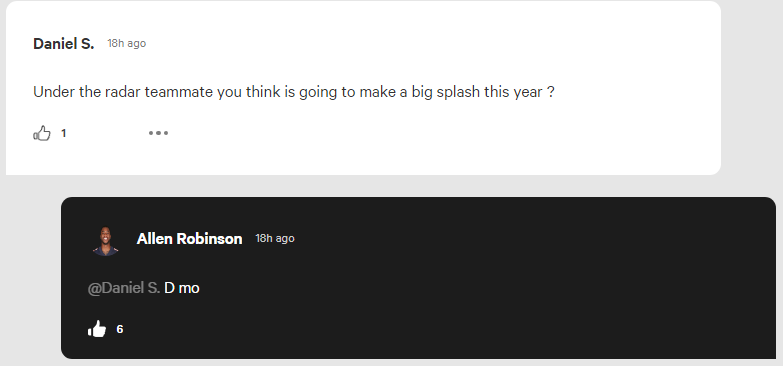 Robinson was pretty much the only good thing about the Bears offense last season. He had over 1,100 yards with seven touchdowns and was a constant source of comfort for Mitch Trubisky. While he's more than earned the contract extension that is coming his way, he can't be expected to carry things alone. Others need to help. During a Q&A session for The Athletic, he was asked by a fan which overlooked teammate will end up making a splash this coming season.