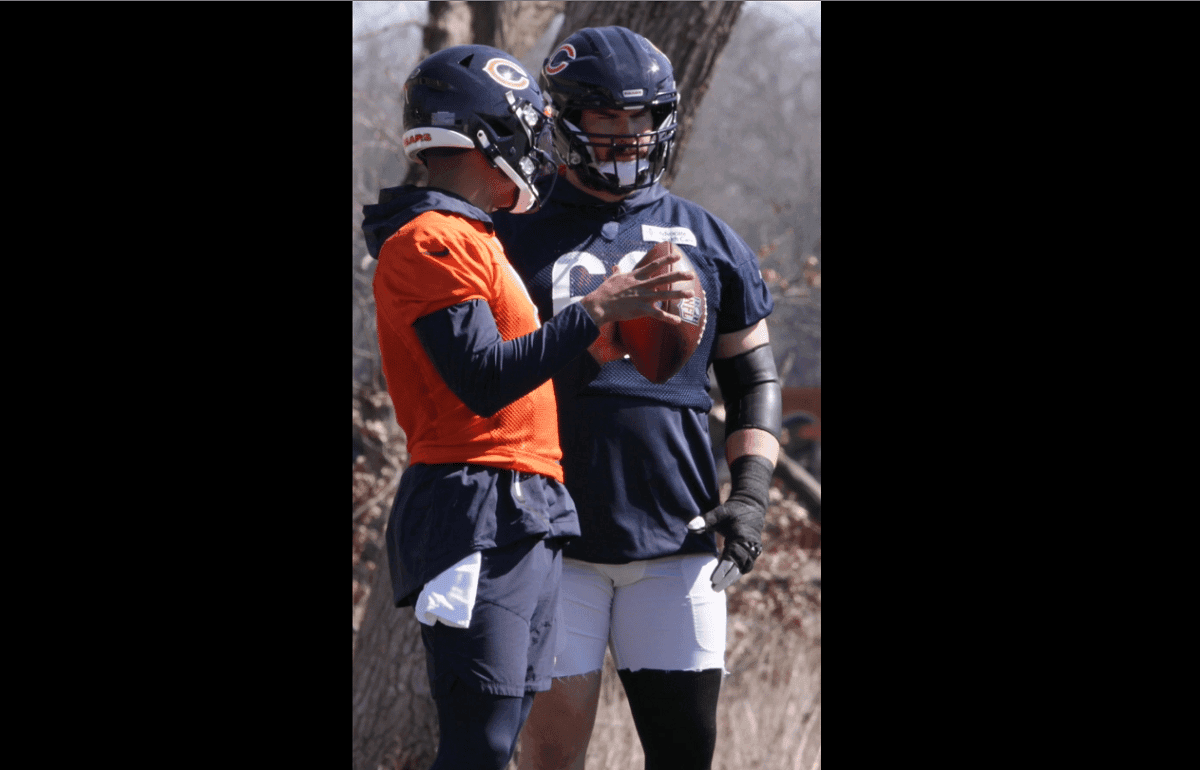 The third-year wide receiver sat down for an interview on Red Line Radio. He was asked if he had accepted the perception that the team might not be very good this year. Mooney flat-out denied it. He has no doubt in his mind this offense can surprise people. His confidence comes from seeing the skill players assembled and watching Fields' progression this summer. There is only one thing required for this thing to take off. Protection. They must keep the QB on his feet. [video width="1920" height="1080" mp4="https://www.sportsmockery.com/wp-content/uploads/2022/06/Preview-of-the-NEW-Bears-with-WR-Darnell-Mooney2022_06_23_15_08_33.mp4"][/video] Fields was sacked 36 times in 12 games last year. He took a beating and was under pressure quite often. The offensive line was overmatched way too often. Fields' tendency to hold the ball made matters worse. When he was protected, though, the guy made some eye-popping plays. His three best games against Pittsburgh, Las Vegas, and Detroit saw him sacked three times or fewer. Probably not a coincidence.Justin Fields is at the mercy of his offensive line.