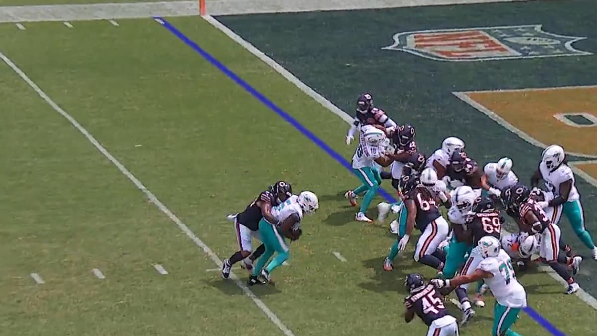 To his credit, Jones recovered in time for camp. He, Trapilo, and Kiran Amegadjie spent the next two weeks rotating reps with the first team. When Jones got the nod to start the preseason opener against Miami, it felt like a sign that maybe he might survive after all. Unfortunately, it wasn't his greatest showing. Chicago stalled on multiple drives. When they finally scored in the 2nd quarter, it was done largely despite Jones, who had one of the ugliest whiff blocks in recent memory on Tyson Bagent's touchdown throw.