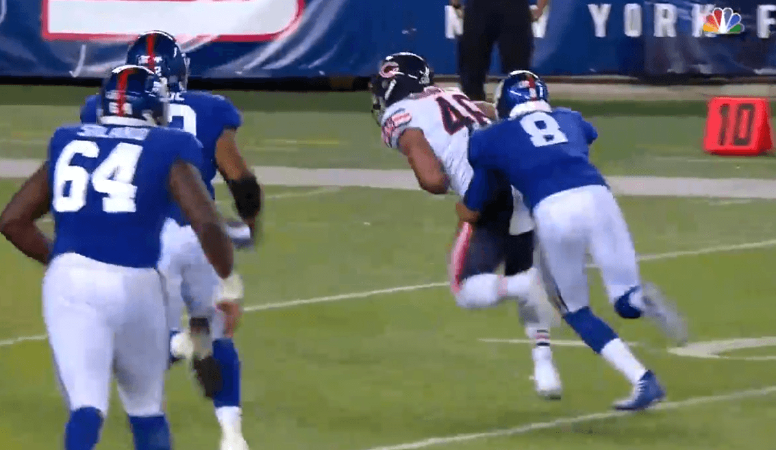 It was a brutal night for the reserve tackles. Rashaad Coward left the game with an elbow injury. Cornelius Lucas was abused multiple times by Giants pass rushers. This suddenly puts the depth on the edges in serious question for the Bears. Neither of them was experienced to begin with. Now one is hurt and the other looks overmatched. The team may want to think about finding some veteran help to bolster the position.
