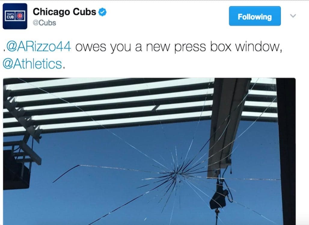 Anthony Rizzo Hits Ball, Cracks Oakland A's Press Box Window