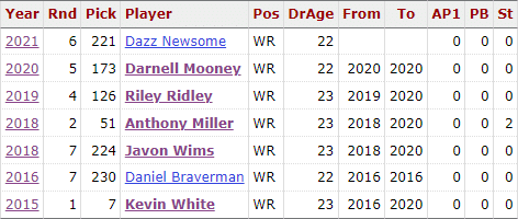 In fact, when one takes an honest look at Pace's work on the offensive side of the ball since he arrived in 2015? They will come away unimpressed. Here is the slate of wide receivers he's drafted to this point. No true standouts and two notable draft busts.