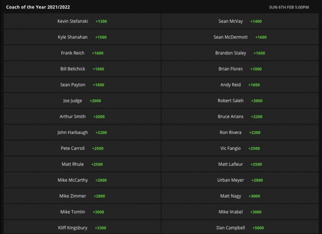 There are a couple coaches I like listed here that have some real value in my opinion. The first is Buffalo Bills HC Sean McDermott (+1600). McDermott led the Bills to an outstanding 2020 season, taking them all the way to the AFC Championship after a superb 13-3 season. QB Josh Allen took the step into superstardom, and he is one of the favorites to win the NFL MVP award. OC Brian Daboll didn't leave for a HC position, which was big for them. This is an uber-talented team that is playing in one of the weaker divisions in football. The Miami Dolphins have questions at QB, the New England Patriots are starting either Cam Newton or rookie Mac Jones, and the New York Jets are not ready to compete yet. The Bills should have no problem if this is what they are facing, and I really like them to roll and compete for a spot representing the AFC in the Super Bowl. This one won't be popular at all, but I think it has some value. We all know the story of Aaron Rodgers wanting out of Green Bay, but I have been a firm beleiver that he stays with the Packers. I just do not see him leaving with that contract and I don't see the Packers trading him. With Rodgers playing, Green Bay is a certain title contender. They have made the NFC Championship in back-to-back years, and have a pretty taleneted roster. Not to mention they have poor competition in the NFC North. What a story it would be if Rodgers stays and wins a Super Bowl after all of this junk. Matt Lefleur is currently a massive longshot at +2500 to win COTY with a team that has made consecutive NFC Championships. Rodgers is still on the team facing a weak division. I think he's worth a flyer.Comments