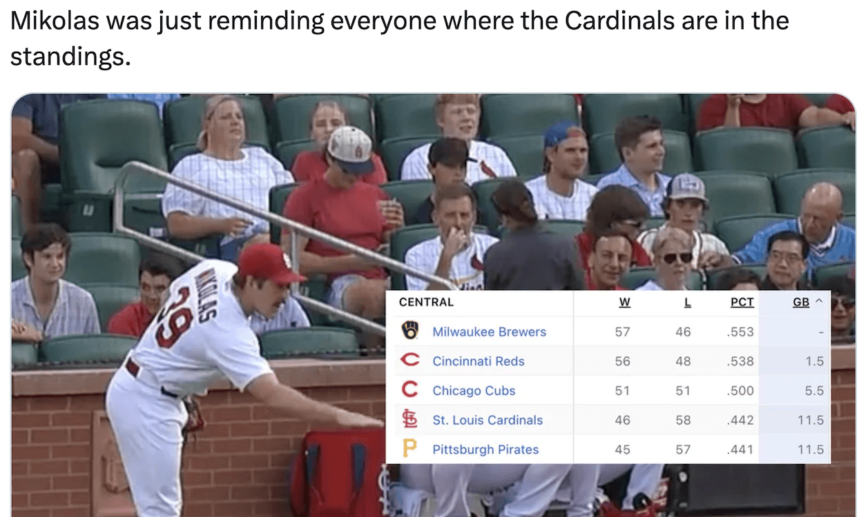 And good because that came with two outs and all of a sudden the Cardinals got into trouble. The Cubs loaded the bases, scored a run with a bases-loaded walk, and then Christopher Morel drilled a two-run double to left field that gave the Cubs a 3-0 lead. All that after Mikolas drilled Happ.