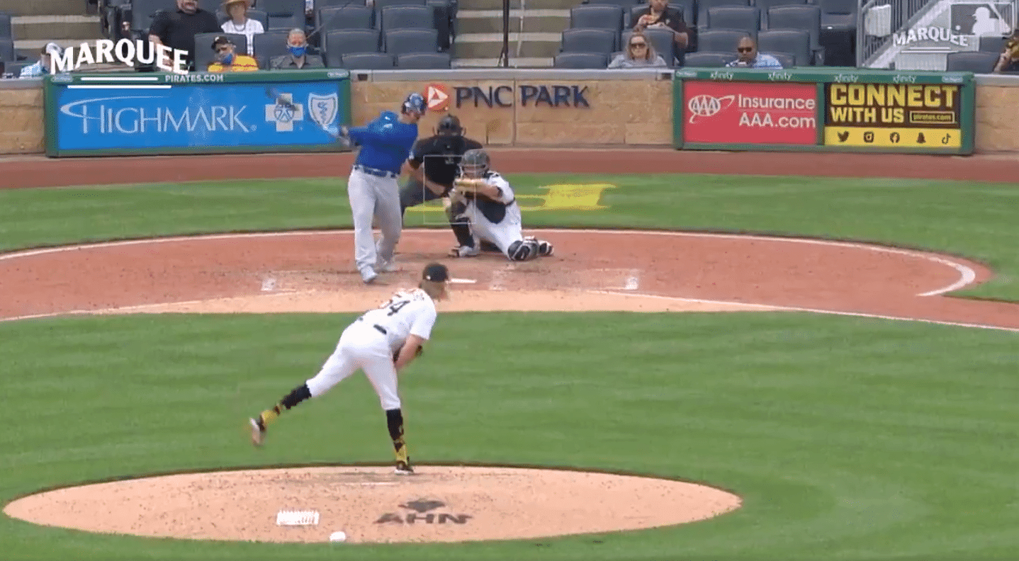 Contreras strikes out looking after starting the at-bat 0-2 on two questionable strike calls. Bryant with another extra base hit. He doubles down the left-field line. 5 of his 6 hits this year have been extra-base hits. Rizzo makes hard contact, but hits it into the shift. He's thrown out from right field. Bryant goes to third. Báez strikes out swinging on a foul tip. Cubs can't drive in Bryant. Score: Cubs 1, Pirates 0Bottom 3