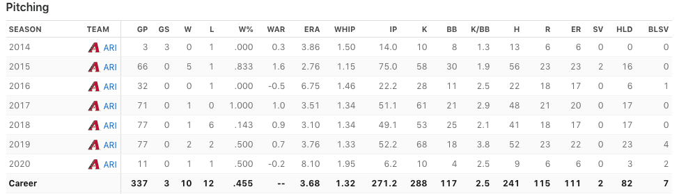 Chafin has only made 11 appearances this season and hasn't been good, but the career numbers indicate he's been pretty solid when healthy.