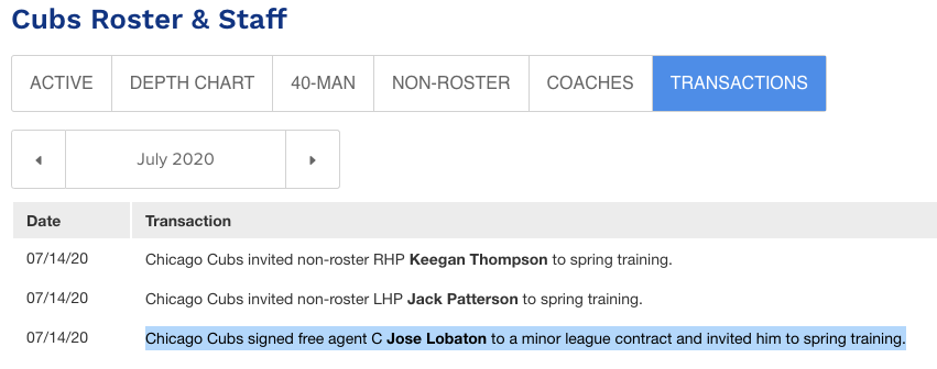 Yet, missed in that set of moves was the addition of veteran catcher José Lobatón, who signed a minor league deal with the Cubs, according to the team's transactions page.