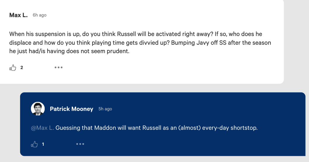 Again, nothing is official, but during Thursday's Q/A session on The Athletic with Cubs beat writers Patrick Mooney and Sahadev Sharma both reporters believe that Joe Maddon will put Russell back at shortstop over Javier Baez.