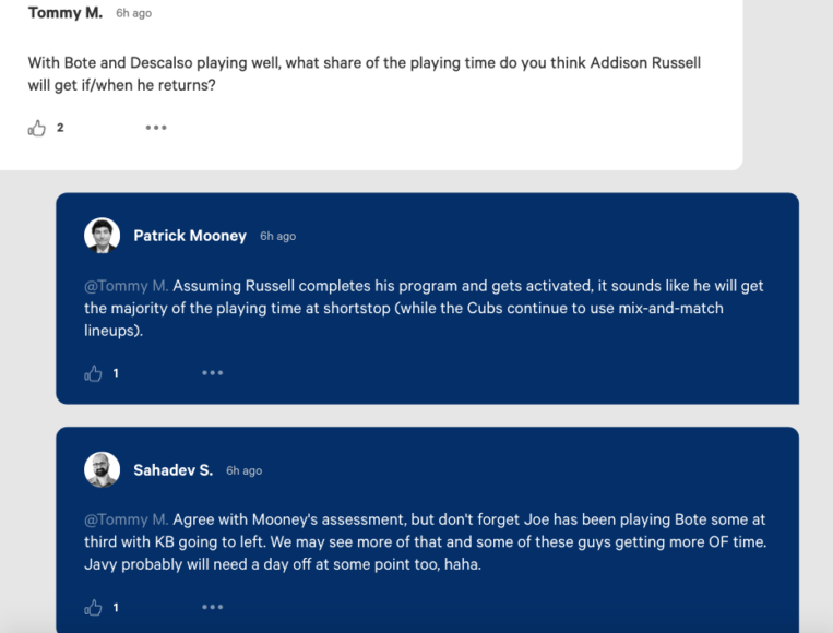 Daniel Descalso, Ben Zobrist and David Bote have all produced, but if Russell is back on the 25-man roster and is considered a starter, then their playing time decreases.