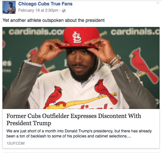 So, not sure who's in charge of all these pages, but the exact same story was posted on "Chicago Cubs True Fans" on Facebook and yes there were also awful comments.